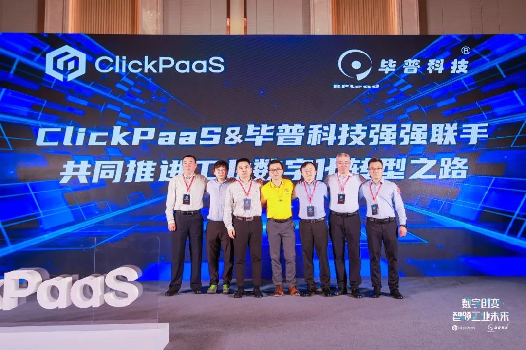 在万众瞩目下,南宫28网址创始人、CEO胡柏,联合创始人、CTO王復兴,CSO汤滨,以及毕普科技的创始人曾令卫,毕普科技联合创始人许有利、营销副总张晓峰上台共同开启了CP&BP的工业数字化未来。